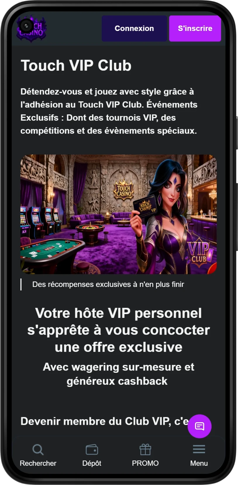 Le VIP Club Touch Casino représente le summum de notre engagement envers nos joueurs.