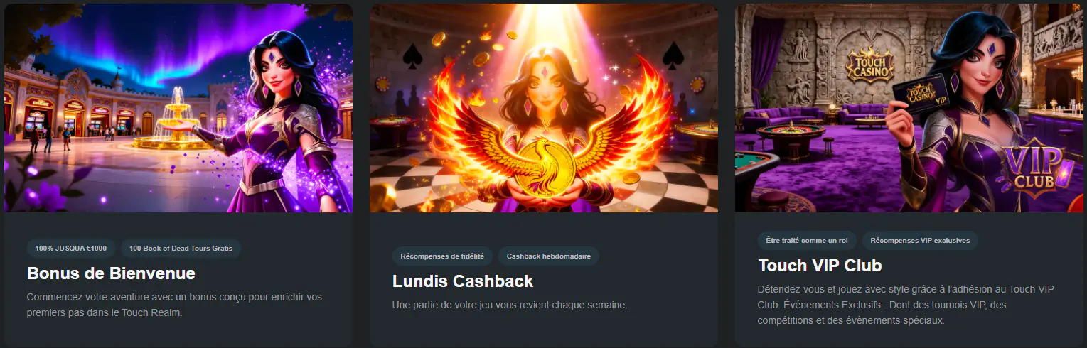 Bienvenue dans l’univers des touch casino bonus, un ensemble d’avantages soigneusement conçus pour récompenser nos joueurs les plus fidèles.